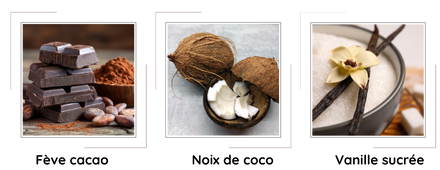 Le noisetier et l’aubépine tropicale ouvrent sur une douceur raffinée, avant de révéler un cœur crémeux de noix de coco et de fleur de tiaré, floral et enveloppant.